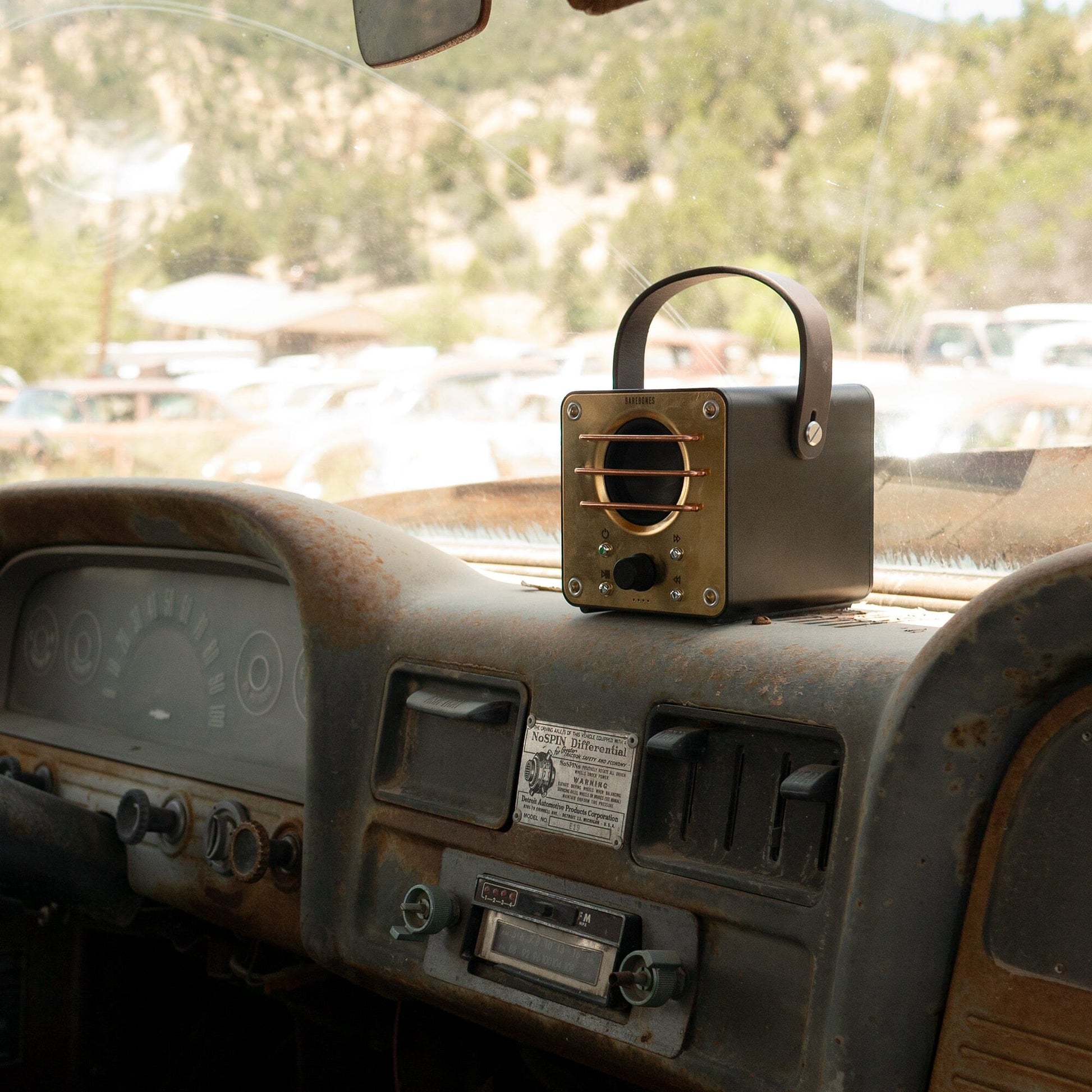Elevate your listening experience with our one-of-a-kind Block Tower Speaker. This vintage-inspired speaker delivers rich, deep sound across all ranges. Easily connect it wirelessly to your phone or computer while on the go or plug it into the wall for a reliable desktop or home speaker setup. Crafted from copper, brass, and aluminum, it features amber battery indicators and a sturdy leather strap for effortless portability. The Block Tower Speaker boasts a battery life of over 20 hours, ensuring prolonged and uninterrupted music enjoyment.