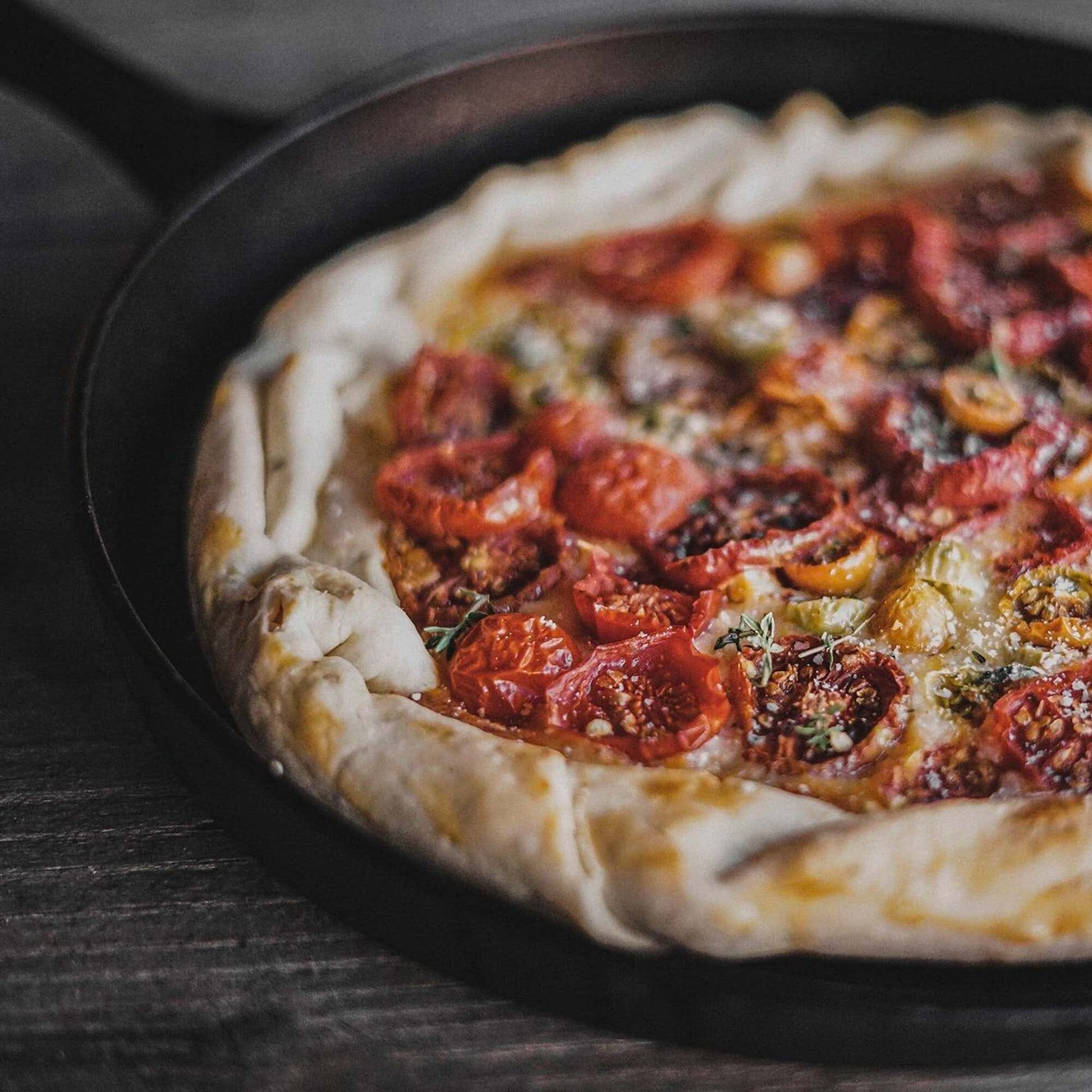 Lighter than a skillet and smaller than a griddle, the newly updated Cast Iron Flat Pan, now called the Skillet Griddle, deserves a dedicated space in your cast iron collection. The new version features a circular 12” polished interior, better heat distribution, and a more ergonomic extended handle, making this an ideal pan for open fire and kitchen cooking. Flipping and serving dishes like crepes, pancakes, tortillas, and pizzas is made easy with a low front ridge and open sides. Pre-seasoned with organic sunflower oil and ready to use right out of the box.