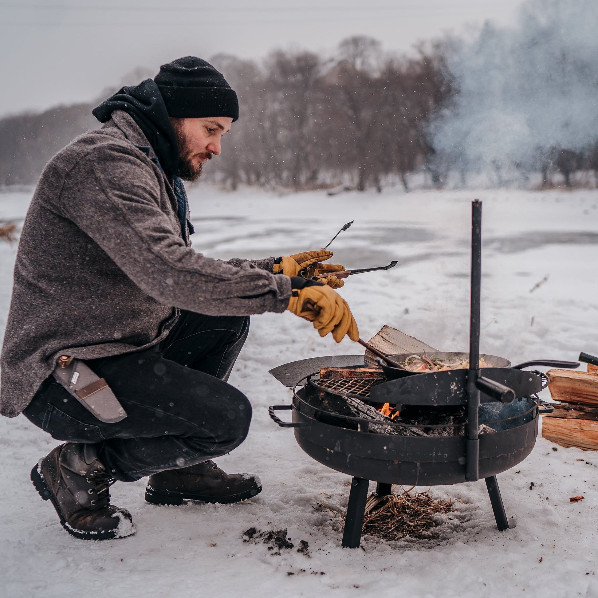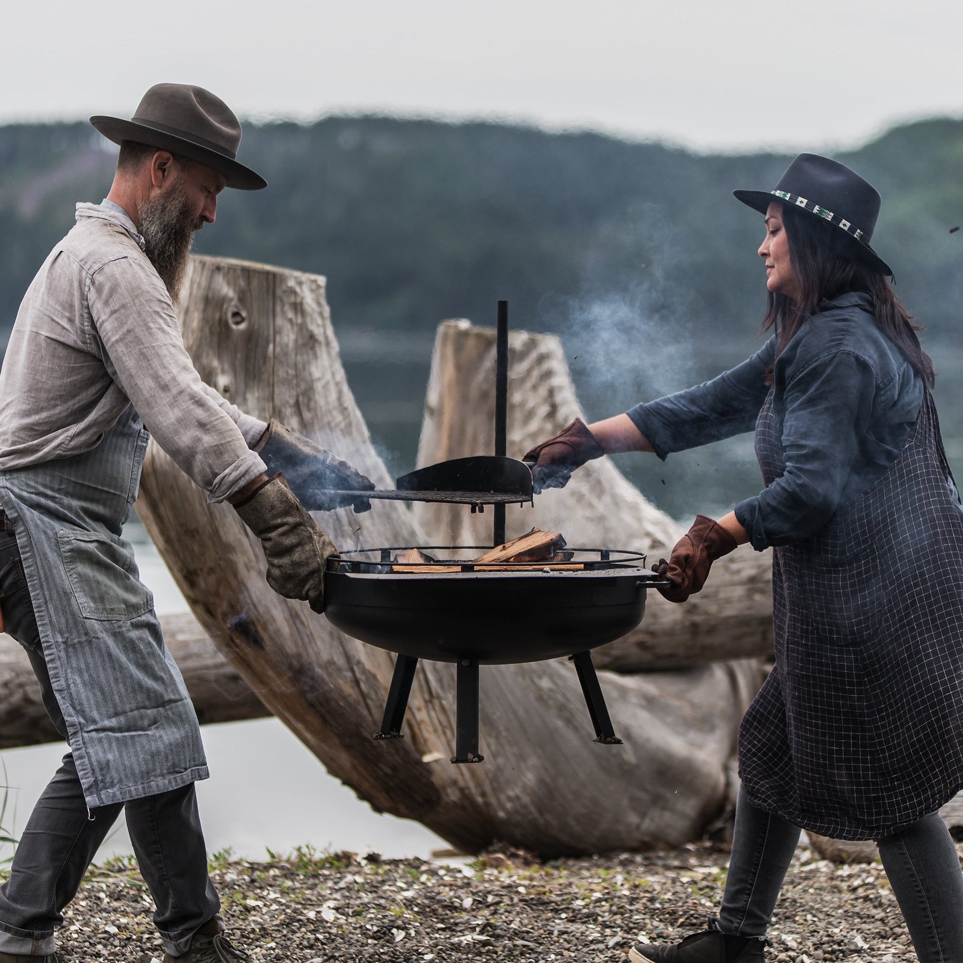 More compact than our Cowboy Fire Pit Grill - 30", this 23" version comes with a pole and grill grate for controlled temperature cooking. Enjoy as a fire pit or use to cook your next meal. This system works great for backyards or can easily be packed for camping.