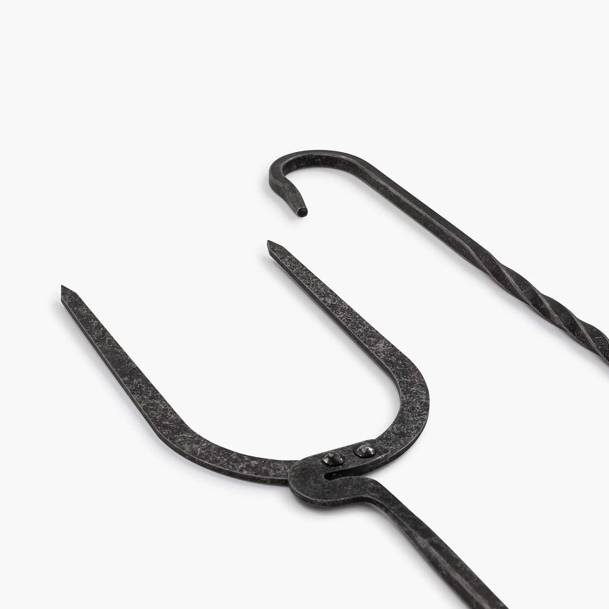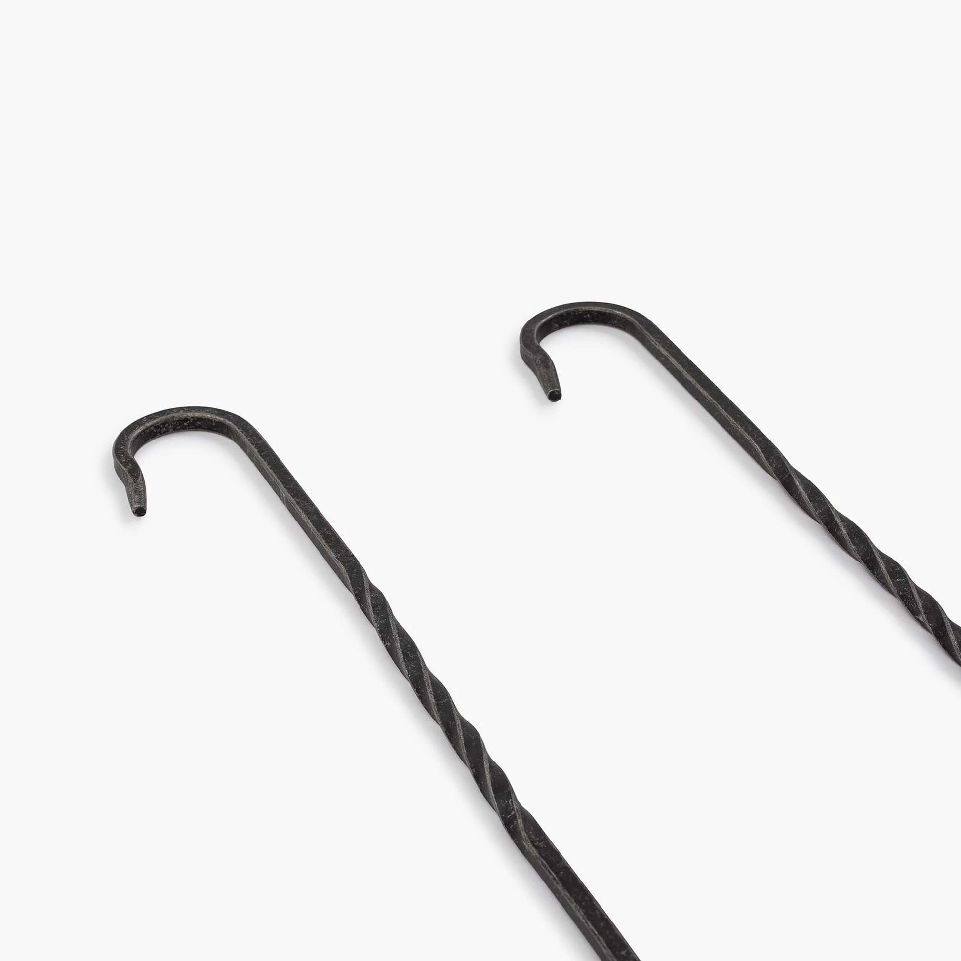 Slow down, find a seat, and enjoy the magic of an extended meal by the fire. Hand-tooled and forged with a beautiful antiqued blackened finish, these roasters are a camp necessity. The thoughtfully designed hook on the end allows for convenient hanging at camp or storage when not in use. Longer than normal length allows for comfort and safety when working around fire and hot coals.