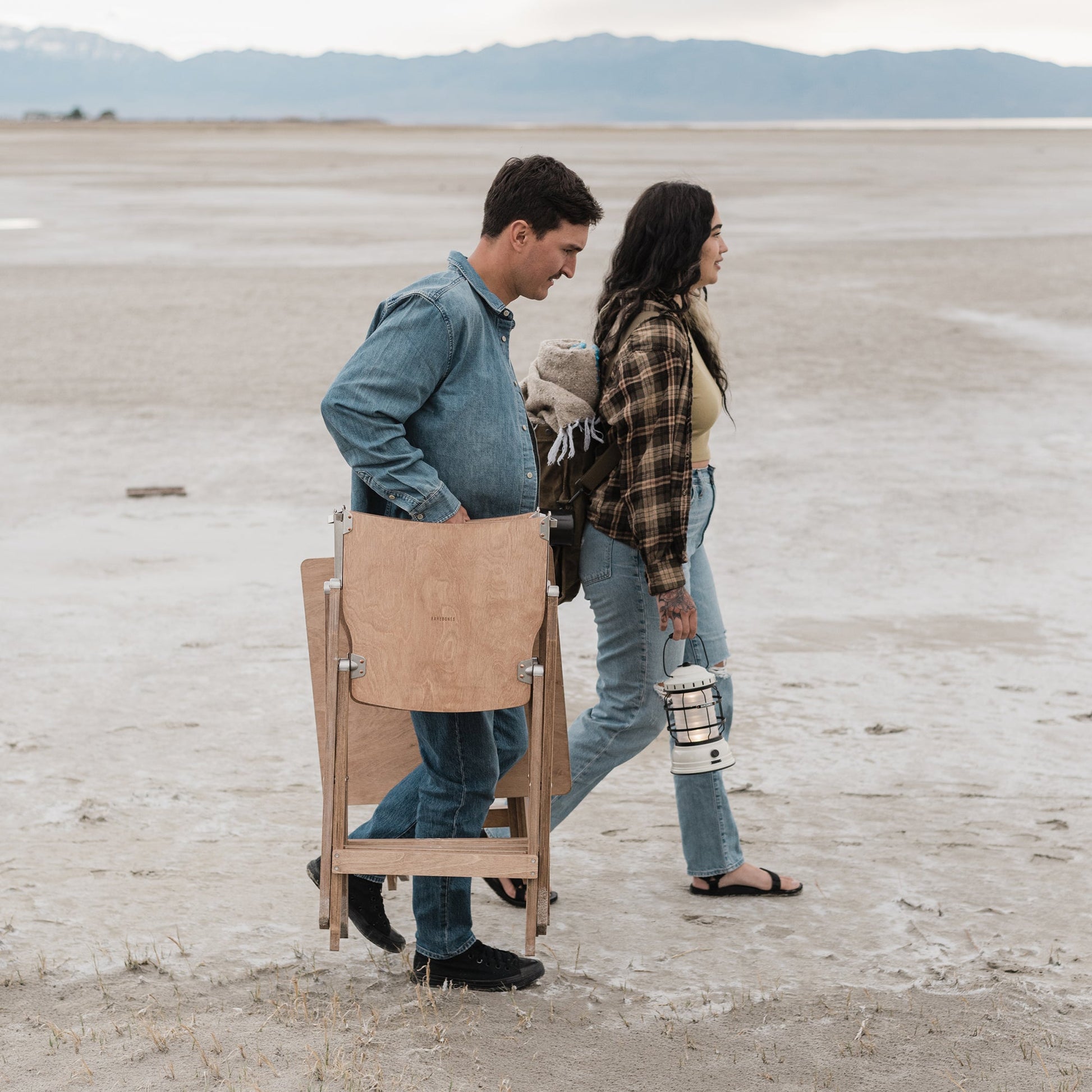 Inspired by antique school and church folding chairs historically used indoors, this wooden folding chair is reimagined for everywhere. Unique and portable, the Ridgetop is ideal for use as part of an urban patio set, in a backyard, camping/glamping, or as extra seating during large gatherings. Slightly curved seat and chair back are built for comfort and practicality. Products in the Ridgetop Series are constructed from birch, stainless steel, and copper, creating a seamless and natural aesthetic that looks and performs beautifully in any environment. Sturdy and built to last, chair folds down easily for storage and is small enough to fit inside a small vehicle. The Ridgetop Folding Chair is stained with a lovely natural honey color and finished with a satin clear coat to protect against the occasional spill or sprinkle.